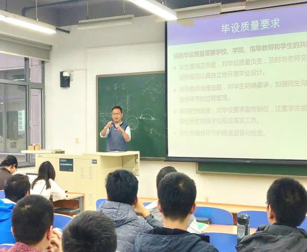 此次毕业设计动员会旨在为学生提供专业指导,让学生更加合理有效地选择毕业设计题目,促进学生的毕业设计进程,同时为学生更好地毕业和就业做铺垫。吕院长分五个方面介绍了毕业设计的工作安排。首先,吕院长强调了毕设的目的与意义,说明了毕业设计在本科教学阶段的重要性,深入浅出地向大家阐述了毕设在现阶段及将来的作用;接着,吕院长介绍了未来毕设的进度时间安排;并且重点介绍了开题、中期、答辩三个工作要点和检查评优情况;最后强调了毕设中的规章制度和注意事项,并进行了相关的安全教育。