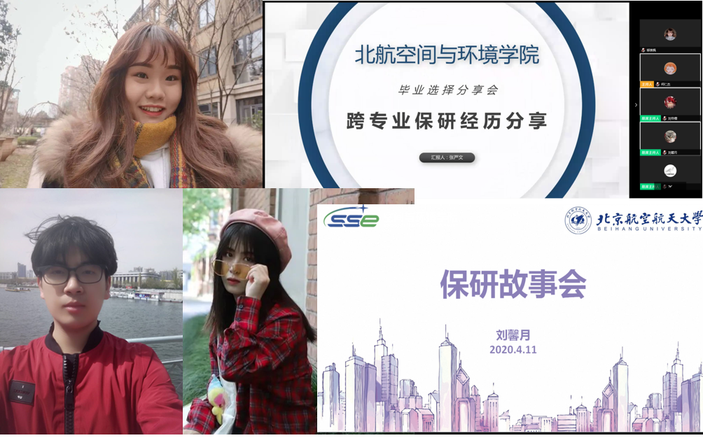 为做好疫情当下学生成长成才教育,空间与环境学院近期组织了四场本科生毕业规划经验分享会,依托朋辈帮扶,传授保研、考研、就业、出国等经验,引导学生合理规划未来。由16级本科生何仁杰组织并主持,多名16级本科生、研究生及已就业毕业生主讲。四场分享会主题分别为:如何做出选择、保研经验分享、考研经验分享和留学就业经验分享。