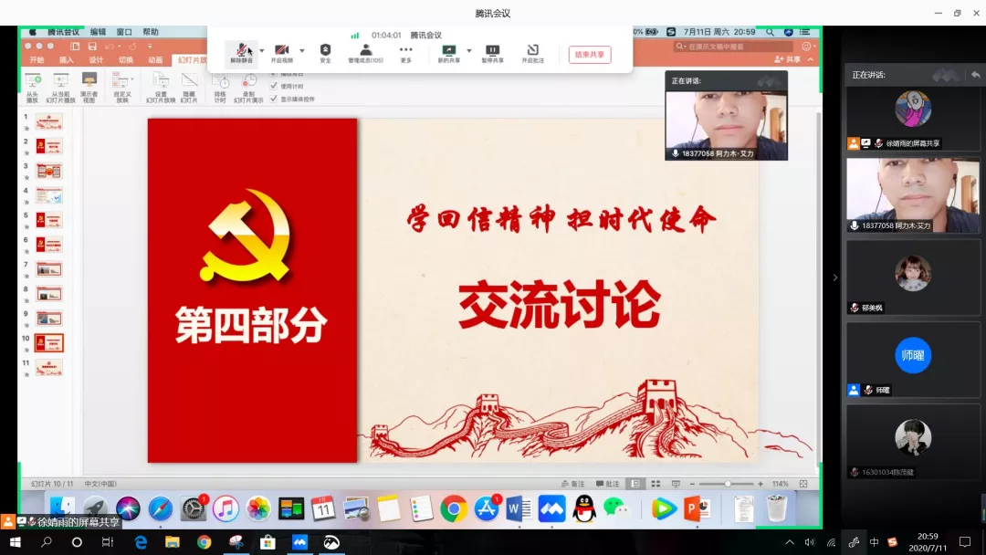 2020年7月11日晚,空间与环境学院全体本科生在腾讯会议平台进行了“学回信精神,担时代使命”的主题班会暨主题党课,对中共中央总书记、国家主席、中央军委主席习近平7月7日给中国石油大学(北京)克拉玛依校区毕业生回信进行了集中学习和讨论。本次主题班会分为观天下事、主题党课、毕业生代表发言和交流讨论四个环节。此次会议由徐婧雨同学主持,主题党课由我院本科生党支部师曜同志主讲。
