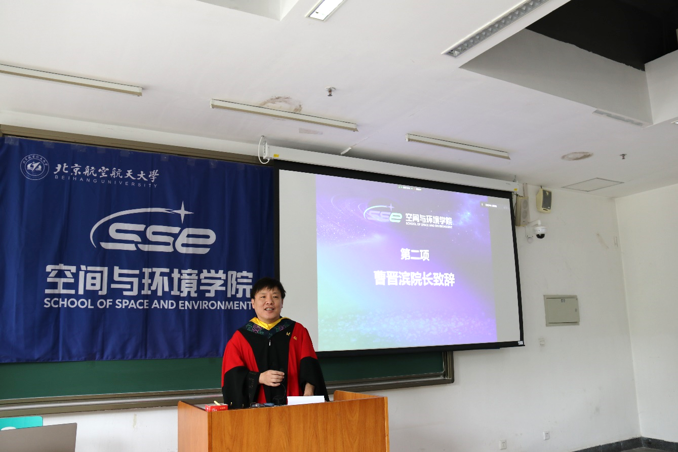 院长曹晋滨对毕业生过往的大学生活进行了总结,寄语毕业生们铭记科研学习生活中的点滴,勇于践行“空天报国,敢为人先”的北航精神,脚踏实地环抱山河、仰望星空逐梦九天,在新岗位、新征程中不断拼搏,取得更大成绩!值北航建校70周年之际,希望毕业生能常回家看看。