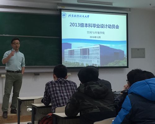 空间与环境学院学生新闻中心电 2016年12月26日周一晚上7:30,我院13级本科生在沙河校区组织召开了毕业设计动员会。参会的有我院副院长吕浩宇老师,毕设指导小组组长、教学主任李晓敏老师,13级班主任孙也老师。本次毕设动员会强调了毕设的重要性,公布了毕设的时间安排,并具体安排了毕设各步的具体工作。