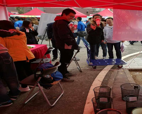 结合环境保护的理念,我院同学们设计了“废旧空塑料瓶入篓”的活动,同学们只要拿有喝完的饮料瓶,就可以拿来做游戏,换奖品!积累的空瓶由学院