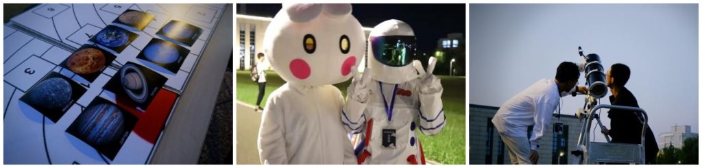 北航新闻网9月26日电(通讯员 张泽宇 门雪洁)金秋送爽,丹桂飘香,喜迎建党百年,共度中秋佳节。为了营造喜庆热烈的节日氛围,传播中华民俗文化,科普中国探月成就,空间与环境学院于9月21日与22日晚在沙河校区举办“空小环邀你来望月——写意环宇,月盈星河”中秋特色活动,通过天文望远镜观测月球及土星、木星,科普探月工程和宇宙空间知识,通过投壶、猜灯谜等游戏体验中华传统民俗的魅力。沙河校区各学院、书院近千名师生参与本次活动。