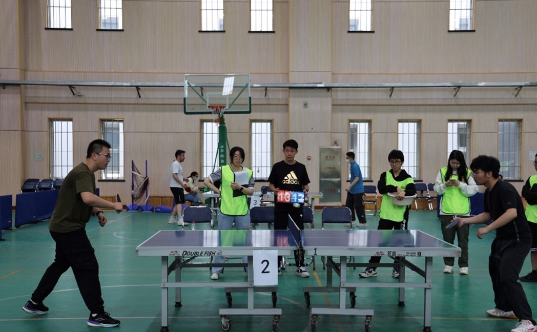 扣人心弦的团体对抗赛——空间与环境学院党委书记唐莉和院长曹晋滨带领队伍进行了男女单、男女双和巧投乒乓五项赛程。比赛中,双方队员全力以赴,赛程上的欢笑声、加油声和喝彩声不断,热情的观众和为队员们加油助威的“空小环”,为队员们提供了更多的支持。