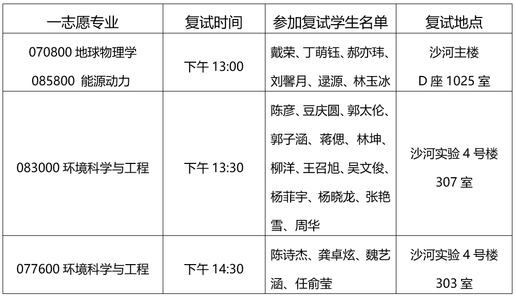 名单顺序即为复试顺序,先进行思政考核,后进行综合考核。
