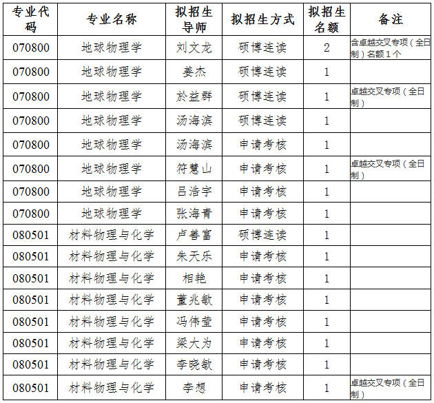 现启动空间与环境学院2023年博士研究生(第一批)招生工作,本批次招收博士研究生导师及名额如下(该招生计划数据可能根据实际招生情况调整):