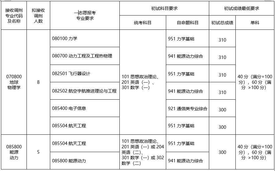 一、接收调剂申请专业、拟招收名额和调剂要求: